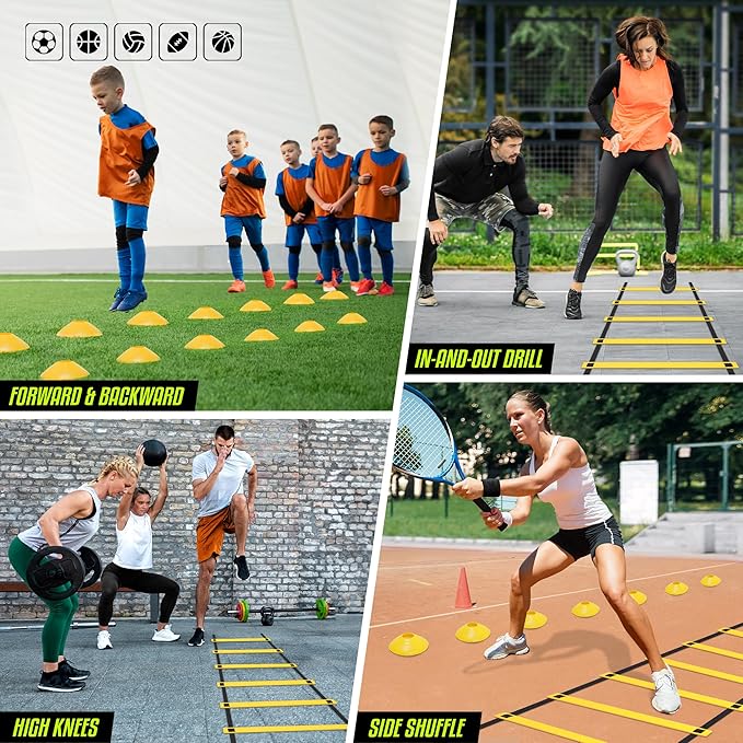 - BETTER ATHLETIC PERFORMANCE: Ideal for athletic training, football, soccer, basketball drills, hockey, lacrosse, tennis, badminton, rugby to increase acceleration, leg strength, and speed, core skills, balance, rhythm, and body control.