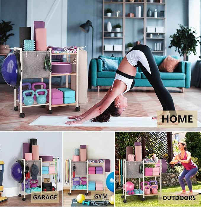 - 【MULTIFUNCTIONAL STORAGE ORGANIZER】 This yoga mat rack can store a variety of items, it can be used not only as a workout storage organizer, but also as home storage rack and garage storage rack to store various items.