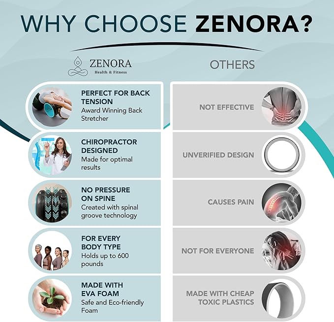 - 𝗖𝗛𝗜𝗥𝗢𝗣𝗥𝗔𝗖𝗧𝗢𝗥 𝗗𝗘𝗦𝗜𝗚𝗡𝗘𝗗 - Discover unparalleled relief with the Zenora Back Stretcher, meticulously handcrafted by our team of chiropractors for the safest and most effective back stretch yet! It has been designed to perfectly and effectively help with back massages, upper back pain relief, as well as lower back pain relief. It is the optimal back massager & stretcher for all, and can help in any instance imaginable!