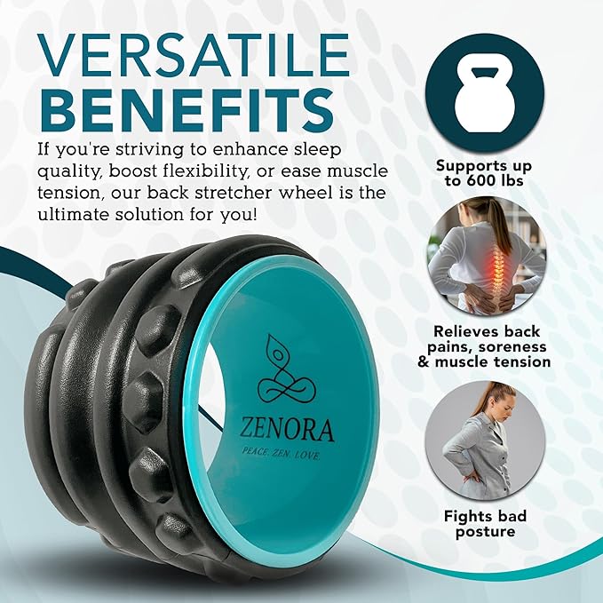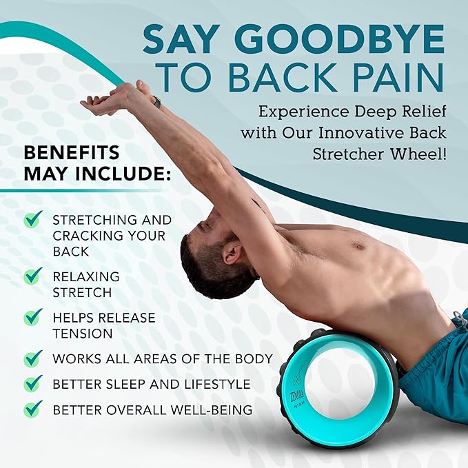 - 𝗗𝗨𝗥𝗔𝗕𝗟𝗘 & 𝗥𝗘𝗟𝗜𝗔𝗕𝗟𝗘 - Our Yoga Wheel and Yoga Roller simplifies Back Pain relief with its intuitive design, enhanced by instructions showcasing various stretches and durability of our product. Our Back Roller can also support up to 500 pounds and boasts a comfortable 7.25-inch width, ensuring exceptional Upper and Lower Back Pain Relief through an effective Back Massage.